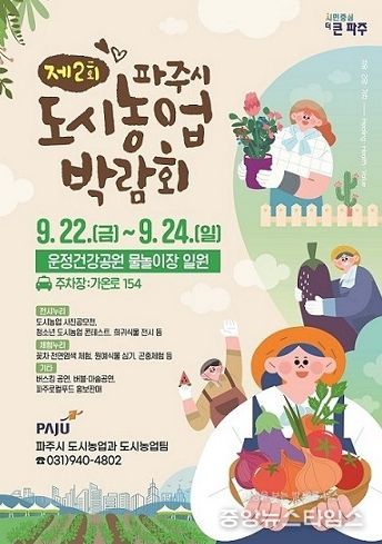 (중앙뉴스타임스 = 이광운 기자) 파주시는 9월 22부터 24일까지 ‘도시농부의 꿈’을 주제로 제2회 파주시 도시농업박람회를 개최한다. 이번 도시농업박람회는 현대인들이 쉽게 접할 수 있는 도시농업을 통해 몸과 마음의 건강과 휴식을 도모하기 위해 마련한 자리다.
