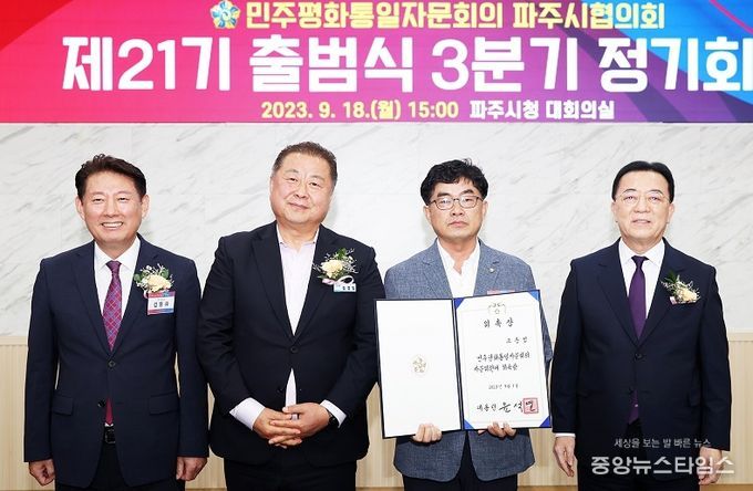 (중앙뉴스타임스 = 이광운 기자) 파주시는 18일 제21기 민주평화통일자문회의 파주시협의회 출범식을 파주시청 대회의실에서 개최했다.