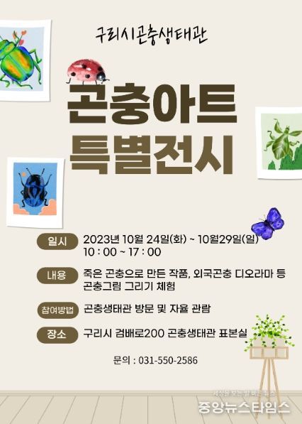 (중앙뉴스타임스 = 이광운 기자) 구리시는 오는 10월 24일부터 29일까지 구리시 곤충생태관 표본실에서 ‘곤충아트 특별전시회’를 운영한다.