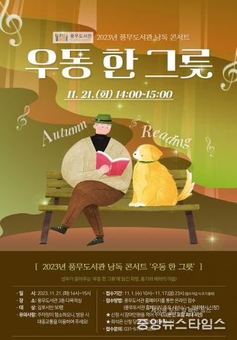 (중앙뉴스타임스 = 이광운 기자) 김포시 풍무도서관은 문화공연 ‘낭독 콘서트 우동 한 그릇’을 오는 11월 21일 화요일 오후 2시에 운영한다.