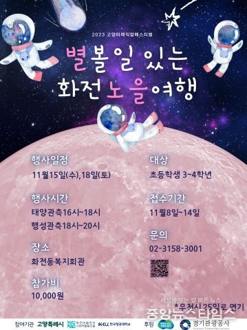 화전마을관리사회적협동조합과 한국항공대학교가 함께 기획해 운영하며, 초등학교 3~4학년을 대상으로 한 천체관측 체험 프로그램을 ‘노을 속 해님 관측’과 ‘가을밤 행성관측’으로 각각 오후 4시, 오후 6시에 2시간씩 두 차례 나눠서 진행한다.