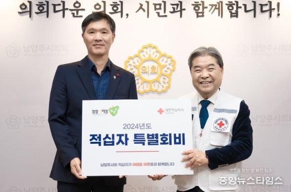 (중앙뉴스타임스 = 방재영 기자) 남양주시의회는 12일 의장실에서 대한적십자사 경기도지사에ㅠ‘2024년 적십자 특별회비’를 전달했다.