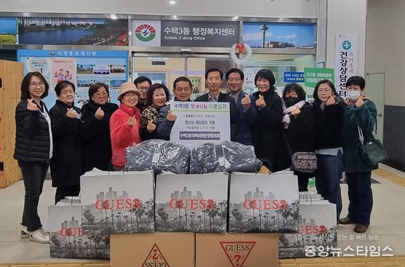 (중앙뉴스타임스 = 방재영 기자) 구리시 수택3동 행정복지센터는 지난 12일 수택3동 지역사회보장협의체로부터 저소득가정 청소년을 위한 패딩점퍼 12벌(150만 원 상당)을 전달받았다.