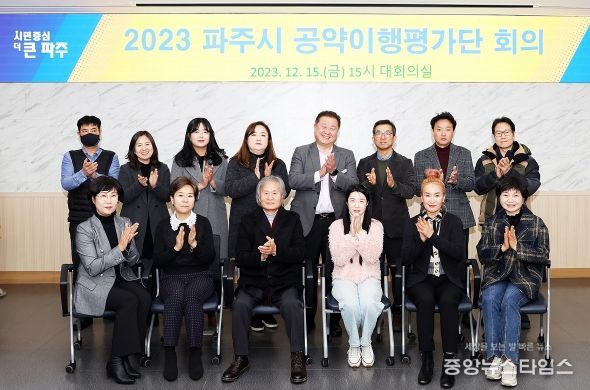 (중앙뉴스타임스 = 방재영 기자) 파주시는 12월 15일 공약을 객관적이고 투명하게 관리하고 이행 상황을 점검하고자‘2023 파주시 공약이행평가단 회의’를 개최했다.