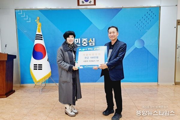 (중앙뉴스타임스 = 방재영 기자) 파주시 교하동은 29일 지목로에 위치한 카페 ‘겨울아침창가’로부터 성금 100만 원을 기부받았다고 밝혔다.