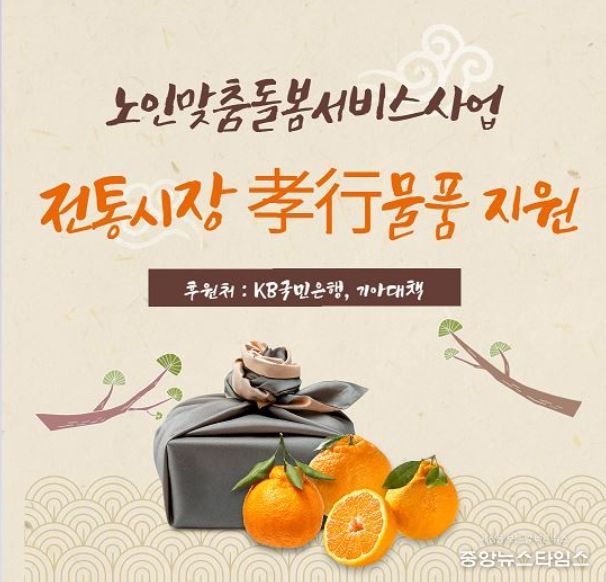 (중앙뉴스타임스 = 방재영 기자) 인천 부평구노인복지관은 설 명절을 맞아 KB국민은행과 한국기아대책이 함께 진행하는 설맞이 사랑의 효심 나눔 참여 일환으로 ‘전통시장 孝行물품’ 100셋트(700만원 상당)를 후원받았다고 밝혔다.