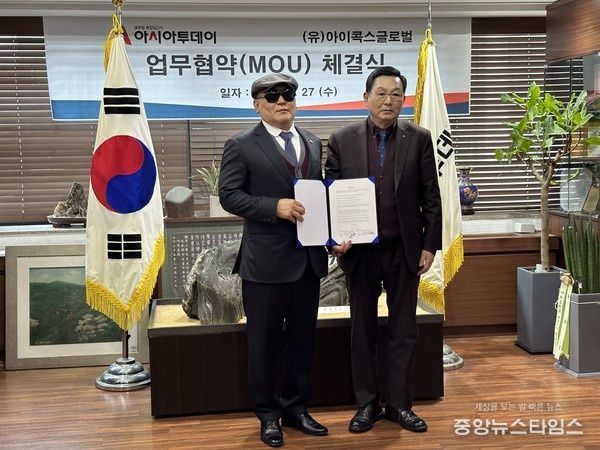 우종순 아시아투데이 대표이사와 김동범 아이콕스글로벌 공동대표는 27일 아시아투데이 본사에서 장애인 방송사업 진출을 위한 협약식을 맺고 장애인들의 시청권 확보와 권익 향상을 위해 협력해 나갈 계획이다.