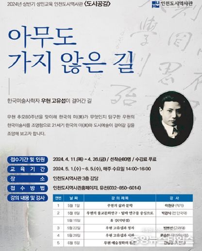 우현은 일제 강점기에 한국의 미와 예술이 무엇인지 천착한 미술사학자다. 고유섭이 걸어간 '아무도 가지 않은 길'을 주제로 한 이번 강좌는 5개의 강좌가 진행된다.