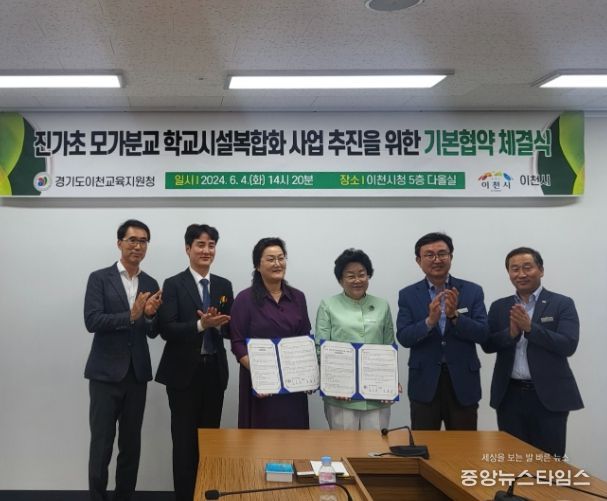 (중앙뉴스타임스 = 방재영 기자) 경기도이천교육지원청은 4일 이천시와 학교시설복합화 사업 추진을 위한 기본 협약(MOU)을 체결했다. 본 협약은 모가분교(폐교)에 학교복합시설을 건립하기 위한 이천교육지원청과 이천시의 상호협력을 도모하고자 이뤄졌다.