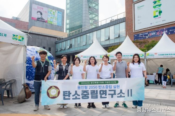 (중앙뉴스타임스 = 방재영 기자) 용인특례시의회 의원연구단체 ‘탄소중립연구소Ⅱ’는 지난 8일 포은아트홀 야외광장에서 탄소중립 오프라인 환경 캠페인을 전개했다.