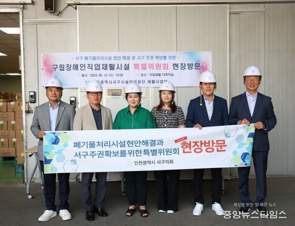 (중앙뉴스타임스 = 방재영 기자) 인천 서구의회 '폐기물처리시설 현안 해결과 서구 주권 확보를 위한 특별위원회'은 12일 서구 구립 장애인직업재활시설과 인천 남부권 광역 생활자원회수센터 현장방문을 실시했다.