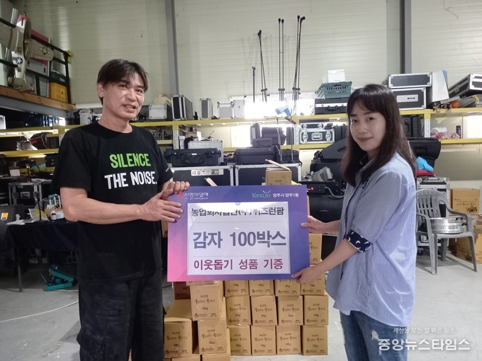 (중앙뉴스타임스 = 방재영 기자) 양주시 양주1동이 관내 삼숭동 소재 농업회사법인 ㈜위즈런팜에서 관내 어려운 이웃들에게 나눠달라며 직접 재배·수확한 ‘감자 100박스’를 기부했다고 10일 밝혔다.