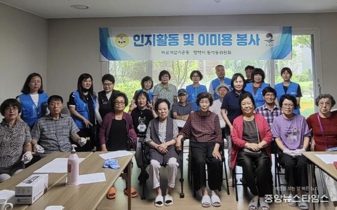 (중앙뉴스타임스 = 방재영 기자) 평택시 바르게살기운동 동삭동위원회는 지난 11일 동삭동 관내 경로당(지제더샵센트럴파크 3단지)에서 어르신들을 대상으로 인지 활동 및 이미용 봉사를 진행했다.
