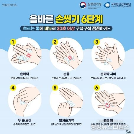 올바른 손 씻기는 감염병 예방의 가장 기본이 되는 건강수칙으로, 코로나19 바이러스를 비롯한 수인성 및 식품 매개 감염병, 수두, 노로바이러스 등 여러 감염병을 예방할 수 있다.