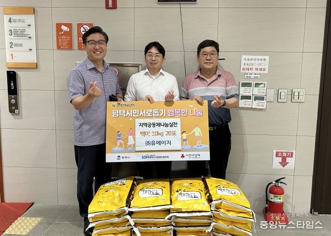 (중앙뉴스타임스 = 방재영 기자) 예비사회적기업 ㈜유에이지가 평택시 장애인회관에 백미 200㎏을 전달했다.