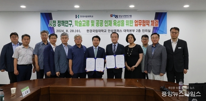(중앙뉴스타임스 = 방재영 기자) 한경국립대학교(총장 이원희)는 28일 성남시정연구원(원장 임종순)과 시정 정책 연구 및 공공 인재 육성을 위한 업무협약을 체결했다.