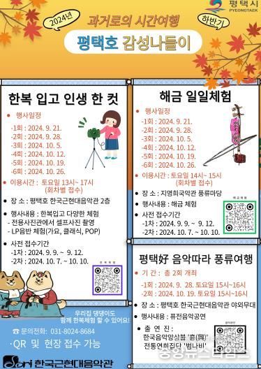 참여 희망자는 정보무늬(QR코드)를 통해 신청할 수 있으며, 현장에서 바로 참여도 가능하다. 자세한 사항은 평택시 및 한국근현대음악관 누리집, 인스타그램 등을 통해 확인할 수 있다.