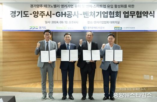 (중앙뉴스타임스 = 방재영 기자) 경기도와 양주시, 경기주택도시공사, 벤처기업협회가 경기양주 테크노밸리 내 벤처기업 유입 활성화를 위해 협력체계를 구축한다.