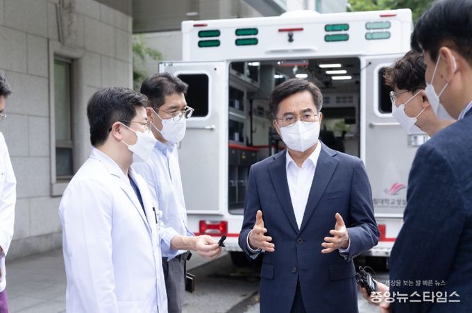 김동연 지사는 먼저 이날 오후 안양 한림대성심병원 응급센터에서 현장을 살펴본 뒤 “어려운 상황에서 전력을 다해 일하고 계시는 의료진분들께 감사 말씀드린다”며 “연휴 때 환자 수가 평상시보다 늘어날 텐데 최선을 다해 주시기 바란다”고 당부했다.