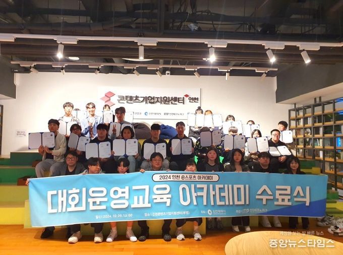 (중앙뉴스타임스 = 방재영 기자) 인천테크노파크(인천TP)는 지난 9일 인천콘텐츠기업지원센터에서 ‘인천 e스포츠 아카데미’의 대회 운영 교육과정 수료식을 개최했다.