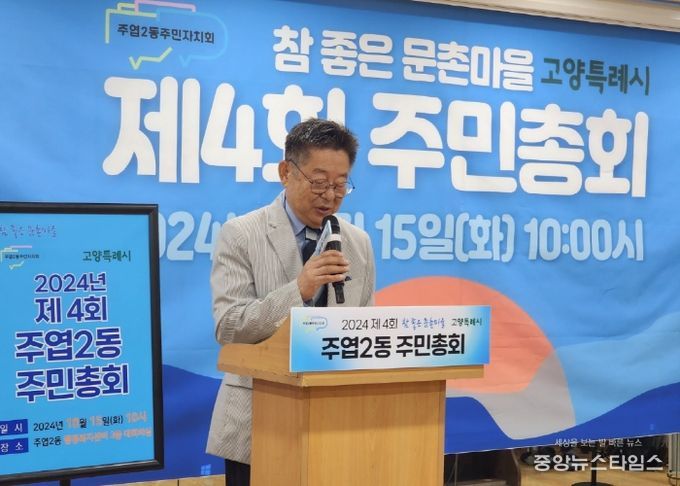 (중앙뉴스타임스 = 방재영 기자) 고양특례시 일산서구 주엽2동 주민자치회는 지난 15일 동 행정복지센터 3층 대강당에서 ‘2024년 주엽2동 주민총회’를 개최했다.