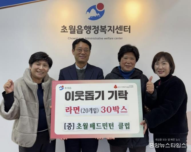 (중앙뉴스타임스 = 방재영 기자) 초월 배드민턴 클럽은 지난 5일 경기 사회복지공동모금회를 통해 광주시 초월읍에 라면 30박스를 기탁했다.
