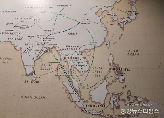 해당 전시물은 인도 불교의 동아시아 전파 과정을 그린 안내도로 국가 지명 표기, 지도상 위치 표기 등의 오류가 발견돼 지난해 12월 경기도와 대한불교조계종이 직접 인도국립박물관에 수정 요청을 한 바 있다.