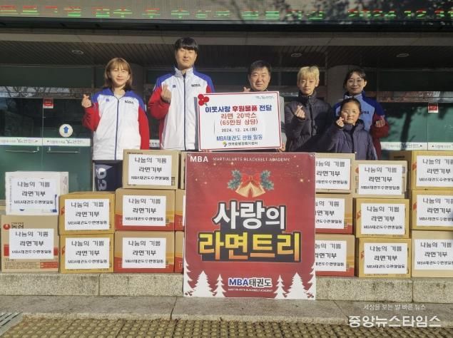 (중앙뉴스타임스 = 방재영 기자) 연천군 전곡읍 소재 MBA태권도 수련생들은 24일 전곡읍행정복지센터를 방문, 저소득 취약계층을 위해 라면 20박스를 기탁했다.