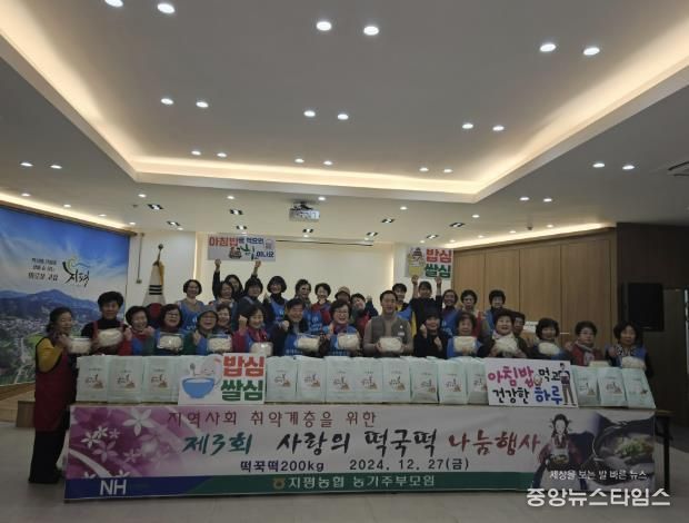 이종수 조합장은 “농가주부모임과 함께 새해맞이 떡국떡 기부 행사에 동참할 수 있어서 기쁘고, 앞으로도 지역사회를 위한 다양한 나눔 활동을 적극적으로 지원하겠다”고 말했다.