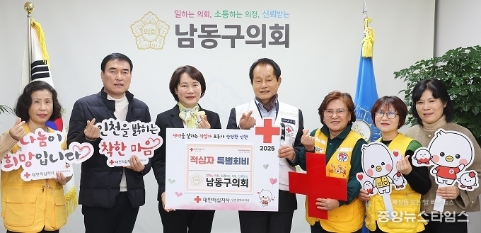 (중앙뉴스타임스 = 방재영 기자) 인천 남동구의회(의장 이정순)는 3일 의장실에서 대한적십자사 인천지사에 적십자 특별회비를 전달하며 따뜻한 나눔의 뜻을 전했다.