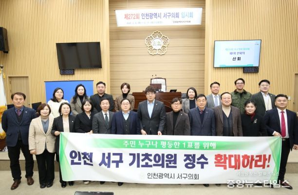 (중앙뉴스타임스 = 방재영 기자) 인천 서구의회가 서구·검단구 분구에 따른 기초의원 정수 확대를 촉구하는 결의안을 채택했다.