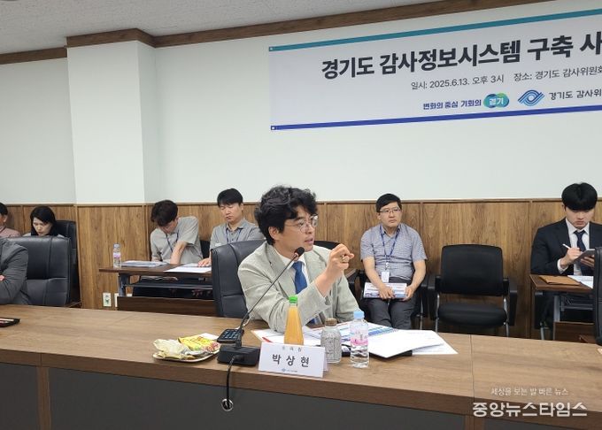 (중앙뉴스타임스 = 방재영 기자) 경기도의회 박상현 의원(더불어민주당, 부천8)은 13일 경기도 감사위원회 회의실에서 열린 '감사정보시스템 구축 사업 착수보고회'에 참석해 “이번 시스템은 단순한 정보 축적을 넘어서 행정 데이터를 기반으로 정책 효과를 분석하고, 예산의 타당성을 검증하는 플랫폼이 되어야 한다”고 강조했다.