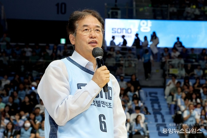 (중앙뉴스타임스 = 방재영 기자) 이동환 고양특례시장이 고양소노아레나에서 열린 2025-2026 시즌 고양 소노 스카이거너스 홈 개막전에 참석했다.