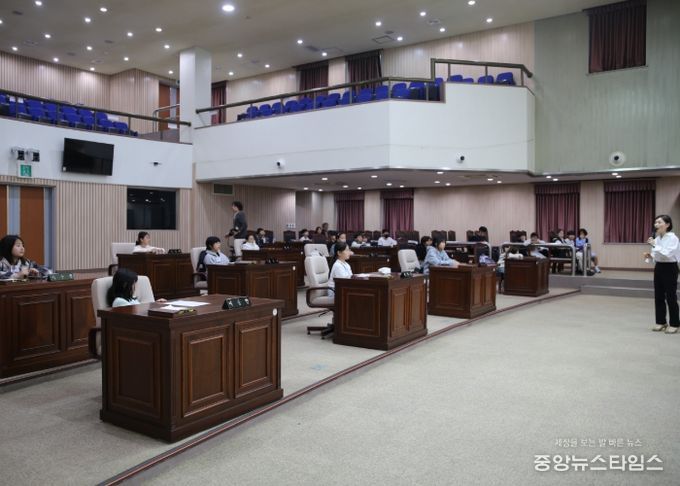 (중앙뉴스타임스 = 방재영 기자) ‘지방의회를 제대로 알고 싶다’라고 밝힌 초등 탐험가 30명이 군포시의회를 샅샅이 체험했다.