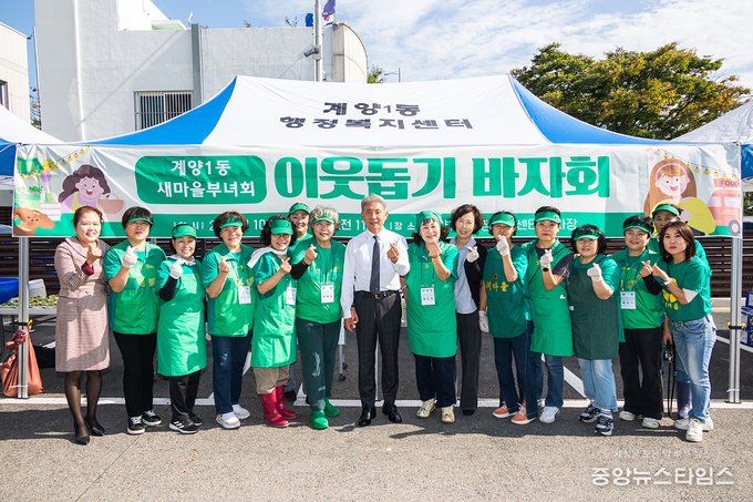 (중앙뉴스타임스 = 방재영 기자) 인천 계양구 계양1동 새마을부녀회(회장 박효순)는 지난 17일 계양1동 행정복지센터에서 이웃 사랑 실천을 위한 바자회를 개최했다.