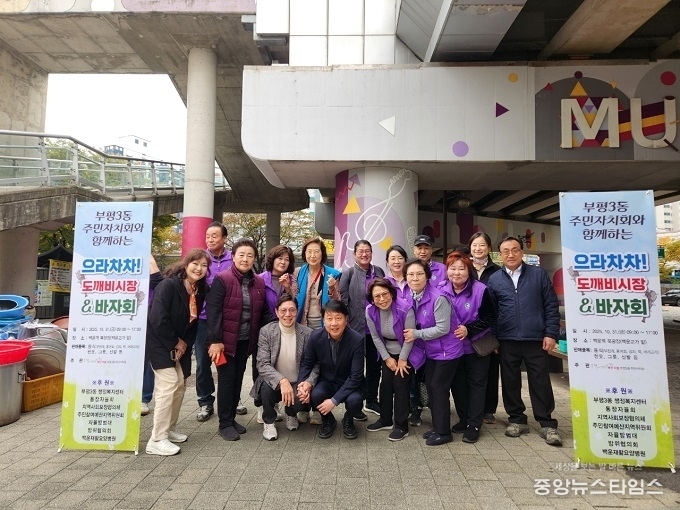 (중앙뉴스타임스 = 방재영 기자) 인천 부평구 부평3동 주민자치회는 지난달 31일 백운역 북광장에서 ‘으라차차! 도깨비 시장&바자회’를 개최했다.