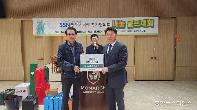 (중앙뉴스타임스 = 방재영 기자) 평택시사회복지협의회(회장 최승규) 골프동호회'평사골'(회장 목태수)이 지난 4일 '2025 평택시사회복지협의회 나눔골프대회'를 성공적으로 개최하고, 도움이 필요한 이웃을 위한 나눔 기금 200만 원을 전달했다.