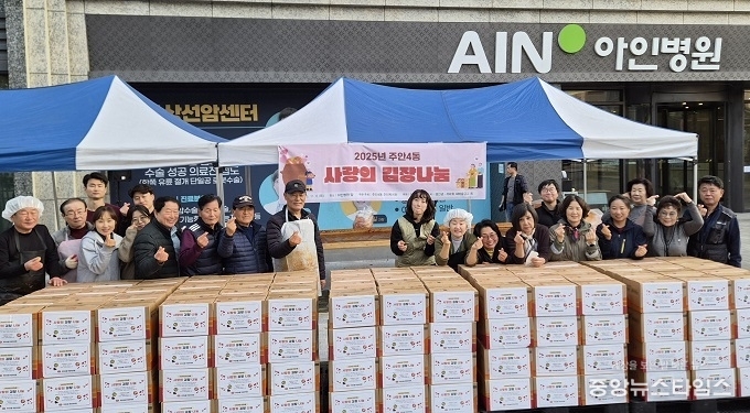 (중앙뉴스타임스 = 방재영 기자) 인천 미추홀구 주안4동 주민자치회(회장 백광일)는 지난 6일 아인병원 앞에서 주민자치 위원과 자원봉사자 등 40여 명이 함께한 가운데 ‘사랑의 김장 나눔 행사’를 개최했다.