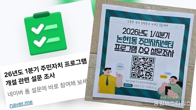 (중앙뉴스타임스 = 방재영 기자) 인천 남동구 논현1동 행정복지센터는 지역 주민과 수강생을 대상으로 2026년 1분기 신규 주민자치프로그램 수요 조사를 했다고 11일 밝혔다.