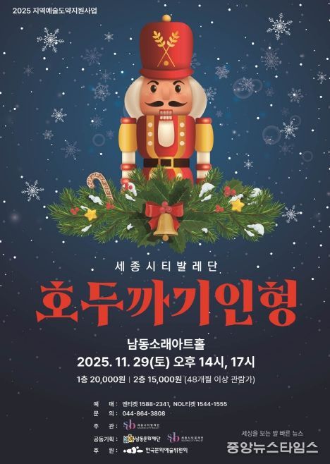한편, 세종시티발레단의 ‘호두까기 인형’은 한국문화예술위원회가 지역 기초예술의 성장과 활성화를 위해 추진한 ‘2025 지역예술도약지원사업’에 선정된 작품으로, 남동문화재단과 세종시티발레단의 공동 기획프로그램으로 선보인다.