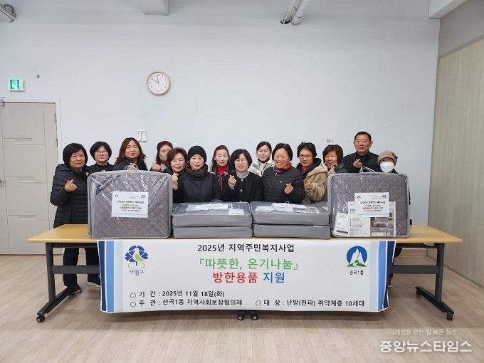 (중앙뉴스타임스 = 방재영 기자) 인천 부평구 산곡1동 지역사회보장협의체는 지난 18일 ‘따뜻한 온기나눔 방한용품 지원사업’을 통해 지역 내 난방 취약계층 10세대에 전기매트를 전달했다.