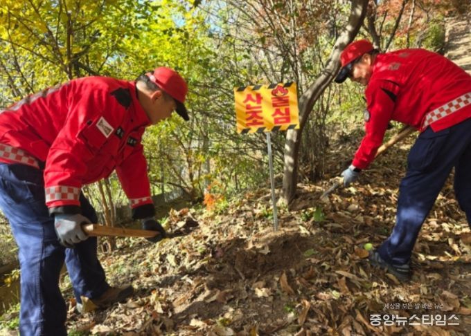 (중앙뉴스타임스 = 방재영 기자) 김포시는 건조한 날씨와 강풍이 이어지는 가운데 산불 위험 증가에 선제적으로 대응하기 위해 지난 11월 15일부터 17일까지 3일간 산림 인접지 가을철 산불 예방 안내판 설치와 인화물질 제거 작업을 완료했다고 밝혔다.