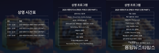 (중앙뉴스타임스 = 방재영 기자) 경기콘텐츠진흥원이 주최한 ‘2025 대한민국 AI 콘텐츠 어워즈’ 단편영화 부문 본선 진출작 21편이 오는 28일 경기인디시네마 전용관(롯데시네마 광교)에서 특별 상영회를 통해 관객들과 만난다.