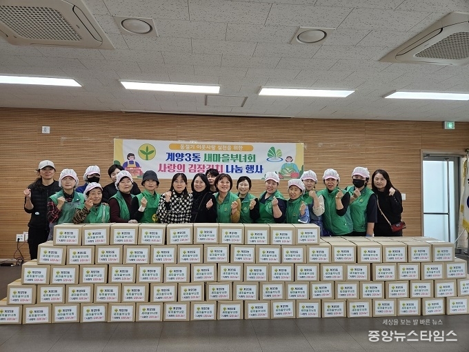 (중앙뉴스타임스 = 방재영 기자) 인천 계양구 계양3동 새마을 부녀회(회장 김명화)는 지난 25~26일 이틀에 걸쳐 ‘2025년 사랑의 김장김치 나눔 행사’를 개최했다.