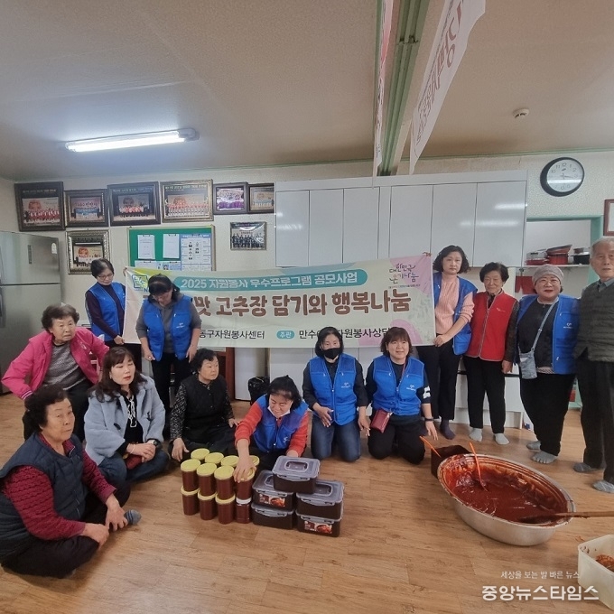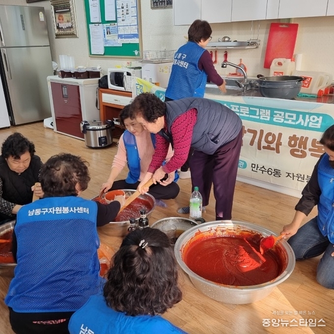 (중앙뉴스타임스 = 방재영 기자) 인천 남동구 만수6동 행정복지센터는 ‘스마일봉사단’이 경로당 어르신들과 함께 고추장 담그기 봉사활동을 실시하고, 완성된 고추장을 전달했다고 28일 전했다.
