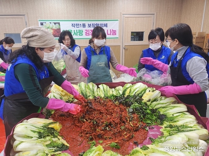 (중앙뉴스타임스 = 방재영 기자) 인천 계양구 작전1동 보장협의체(위원장 이영수)는 지난 26일 작전1동행정복지센터에서 겨울을 앞두고 홀몸어르신 등 관내 취약계층에게 온정을 전하기 위한 ‘이웃사랑 김장 김치 나눔 행사’를 진행했다.