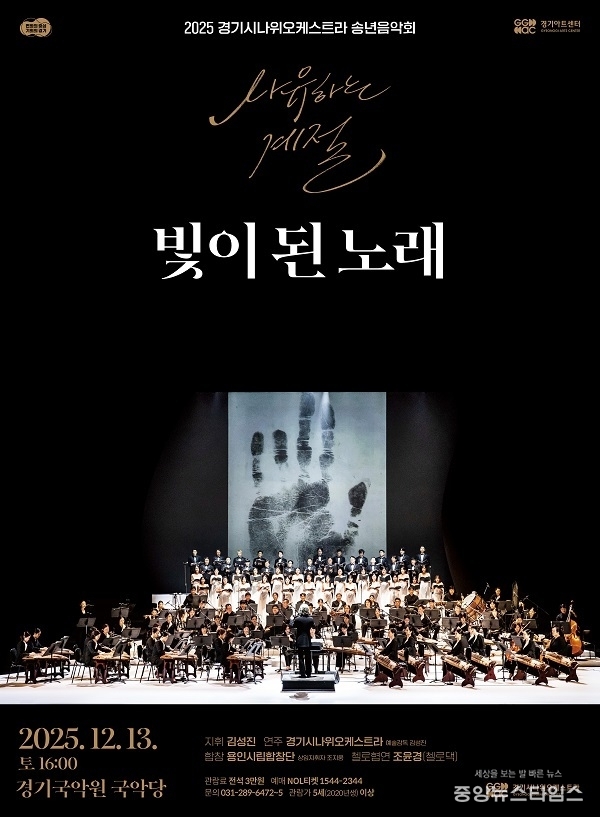 (중앙뉴스타임스 = 방재영 기자) 경기아트센터 경기시나위오케스트라는 연말을 맞아 오는 13일 경기국악원 국악당에서 송년음악회 '사유하는 계절 : 빛이 된 노래'를 선보인다고 3일 밝혔다.