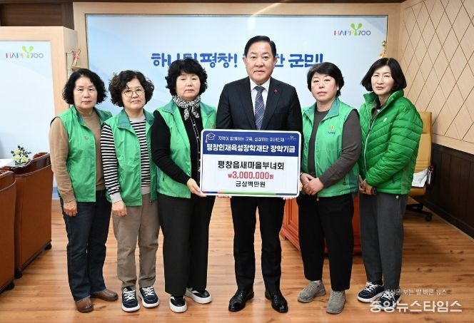 (중앙뉴스타임스 = 방재영 기자) 평창읍새마을부녀회(회장 김석분)가 5일 평창군청을 방문하여 평창인재육성장학재단에 장학금 300만원을 기탁했다.