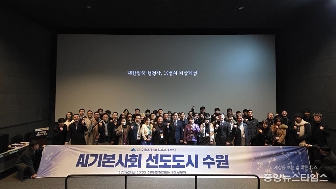 (중앙뉴스타임스 = 방재영 기자) (사)기본사회 수원본부(상임대표 권혁우)는 6일 수원 남문메가박스에서 공식 출범식을 갖고 ‘AI기본사회 선도도시’ 비전을 선포했다.