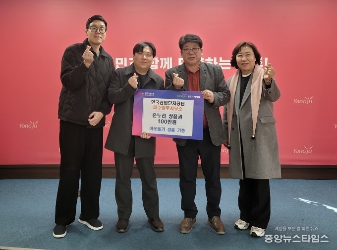 (중앙뉴스타임스 = 방재영 기자) 한국산업단지공단 파주양주사무소가 지난 8일 백석읍 취약계층을 지원하기 위해 온누리상품권 100만 원을 기부했다. 지난해 겨울에 이어 올해도 백석읍을 찾아 꾸준한 나눔을 이어가며 지역사회에 따뜻한 메시지를 전했다.